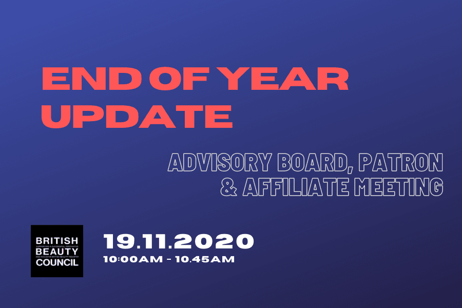 Jane Boardman, Chair of British Beauty Council and Millie Kendall MBE, CEO of British Beauty Council will present the Council's progress through 2020 and plans for 2021. This meeting is EXCLUSIVELY for British Beauty Council Patrons, Advisory Board and Affiliates. Date: 19th November Time: 10.00AM - 10:45AM A formal invitation with zoom link will be […]
