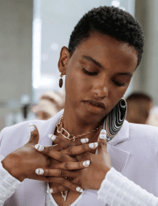 As long as there is a desire for ‘no make-up make-up’, there will also be demand for shiny, healthy, happy nails. The look created by nail artist Rita Remark at Kate Spade spring/summer 2020 is what every woman turns to when she wants to feel put together. Nails were kept short and rounded, with just a touch of the white of the nail showing, and nothing but a coat of Essie’s legendary Mademoiselle polish, base and topcoat. Mademoiselle has been a fashion week staple for years and it’s still the most flattering neutral on any skin tone. Remark created a similarly uncomplicated feel – albeit on a longer, more retro nail shape – at Veronica Beard, where she used a combination of pinky toned nudes. Simone Rocha’s impossibly elegant, almost-nude nails tick all of our boxes – created by London-based session manicurist Ama Quashie, nails were kept short, painted with Kure Bazaar nail polish in French Rose, and adorned with a simple tiny pearl. That pearl takes groomed nails to a whole new level.